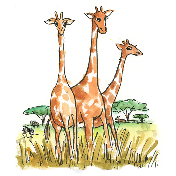 Giraffes Posing for Camera drawing by Joan Chiverton
