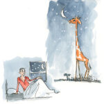 While giraffes may not suffer from true insomnia, they share a curious sleep pattern with humans. Spending only 2-6% of the night in a deep sleep, giraffes sometimes adopt a unique sleeping position – resting their heads on their rumps with their necks curled back.